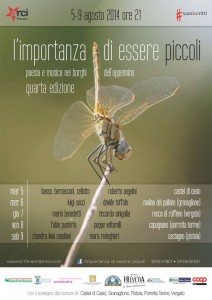 La bellezza ruvida dei paesaggi che fanno da sfondo agli incontri e ai concerti è la materia viva del festival che da alcuni anni rende possibile, insieme agli artisti e agli abitanti dei paesi, la parabola della poesia, il suo fremito. I versi oracolari tratti dal poemetto di Amelia Rosselli ‘Libellula, panegirico della libertà’, hanno suggerito l’immagine di quest’anno, emblema di grazia e levità, un lapsus poetico che nel suo librarsi bilancia le ali e si dona allo sguardo.