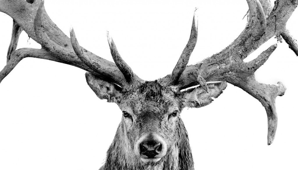 I cervi coda-bianca venuti a pascolare emergono dal bosco dove