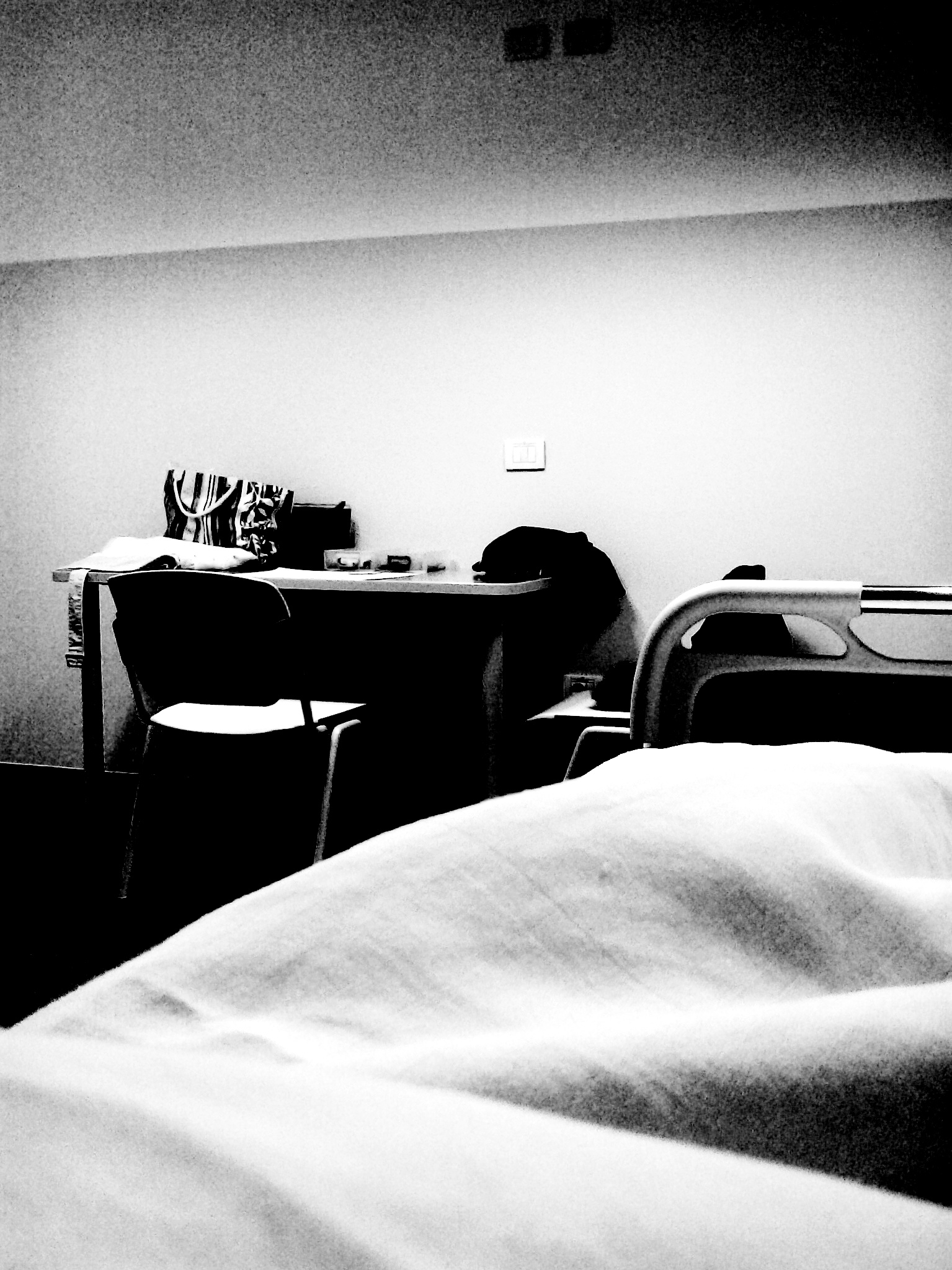 Ha disegnato un muro per costruire una casa, per aggiungere prospettiva alla stanza che contiene. L’inserviente è entrata tre volte, ha invitato a cancellare, poi ha riso : tutto – dice – si cancellerà quando ve ne andrete.