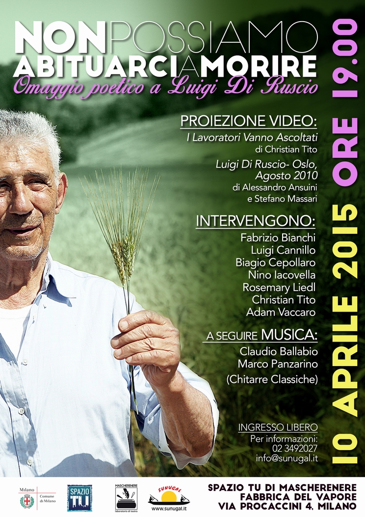- PROIEZIONE DI I Lavoratori Vanno Ascoltati , Documentario di Christian Tito sull’Ilva di Taranto con testi estratti dall’opera di Di Ruscio.
