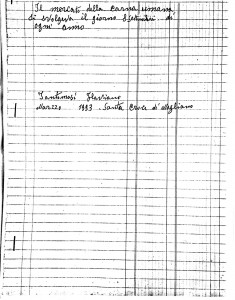 «V.: Influenzato. Sordo. Seduto al tavolo del tinello. La paura di non comprendere le mie domande. Mi si è avvicinato più volte. Ma le risposte, e i racconti, le rivolgeva al mio accompagnatore, non a me: timido, intimidito. Tocca il registratore (anche altri l’hanno fatto). Vive in un edificio moderno, molto alto, più alto della media a S.Croce. I bambini di là che studiano. La figlia e la moglie insieme a noi nel tinello».
