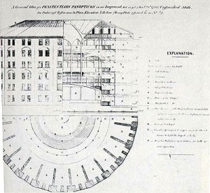 E’ tuttavia Foucault a porre in risalto il Panopticon nel suo celebre Sorvegliare e punire. Bentham scrisse una lettera ai governanti europei di fine Settecento in cui proponeva, in collaborazione col fratello ingegnere, il dispositivo dell’istituzione panottica. Nel 1977, anche il giovane J.A. Miller ne parla nel testo La macchina panottica di Jeremy Bentham.