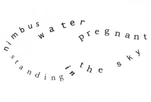 Ho omesso di dire al lettore -lo dico adesso ad Eclaro- che Nimbus (il testo lineare; il calligramma l’ho fatto apposta per la plaquette)è una vecchia poesia che nasce dall’ascolto di una composizione omonima presente in un vecchio disco di Ralph Towner intitolato ‘Solstice’, sortito a pochi anni di distanza (pochi anni prima) dalla sua partecipazione all’album dei wheather report ‘I sing the body electric’,che è del ’75. Towner, dagli Oregon in poi, è sempre stato un chitarrista straniato, straniatissimo e in preda all’abbandono, essendosi accostato allo strumento in età adulta (aveva studiato piano;ha suonato la tromba). La poesiola è dunque venuta a galla vent’anni dopo l’ascolto di un disco, non riascoltato in corso di stesura, e neppure dopo. Mi viene da dire, leggendo Eclaro: l’esser detti, ultimo vanto, è anche il più antico. Essere attraversati dall’onda del linguaggio che come corpo vivo trascorre è quanto accade nello scrivere. Come dire che la consapevolezza, anche storica, è nel linguaggio, e che allo scrivente è favorevole una dose di inconsapevolezza, come al panista-trombettista che suona la 12 strings.