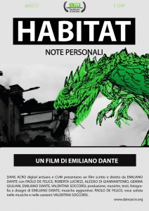 Il film s’intitola Habitat – Note personali e parla della vita all’Aquila nel periodo post emergenziale: Progetto C.a.s.e., M.a.p., autonoma sistemazione, anni 2010, 2011…2014. Emiliano ha già diretto un altro film, Into the blue, ambientato nelle tendopoli, che vidi a suo tempo e mi piacque, o meglio, lo trovai tollerabile, degno, diverso dalla gran parte delle testimonianze, spesso di scarsa qualità e obiettività, dal retrogusto vittimistico o beceramente speculative.