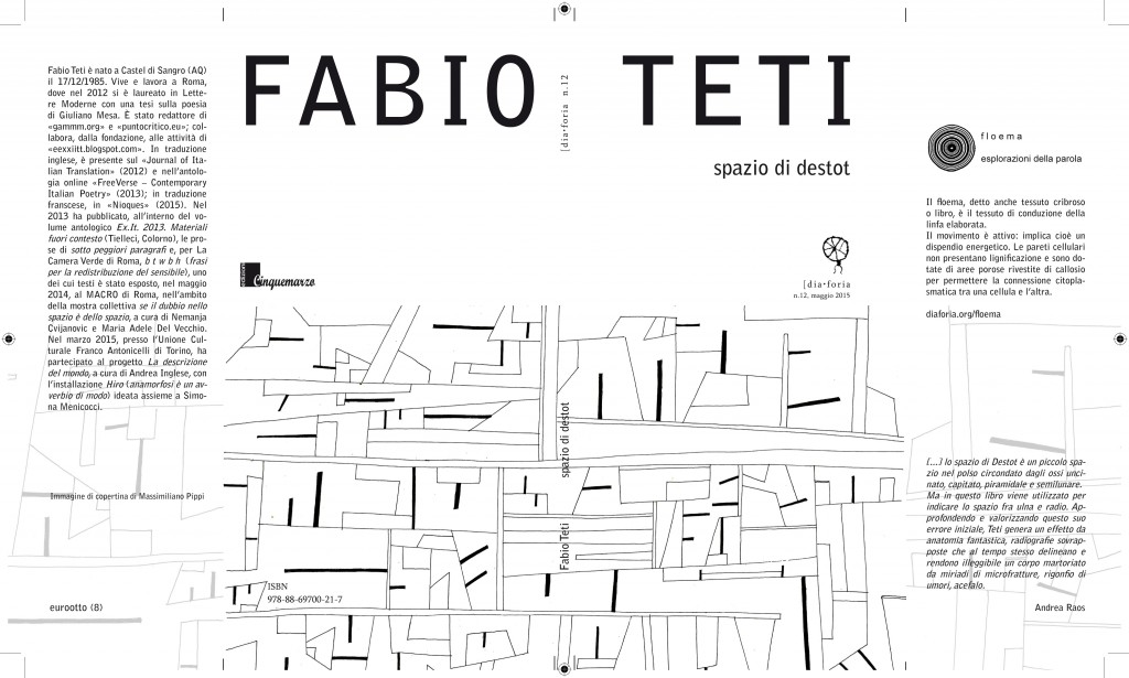 Tratto da Spazio di Destot, Diaforia / Cinquemarzo, collana Floema, 2015. Il libro puo’ essere acquistato scrivendo a info@diaforia.org.