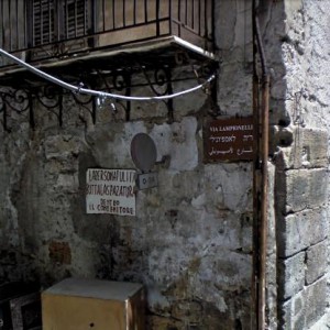 Su una grande porta ad arco, oltre la quale rimanevano i ruderi della chiesa della protettrice dei tavernari, era appeso un cartello. Ovale, bruno con tre scritte bianche, la prima in italiano “vicolo S. Sofia” le altre in ebraico e arabo. Gaspare rimase a fissare il cartello, cercando di decifrare simboli e lettere, vide che dall’altro capo della strada c’era un cartello simile. Non fece in tempo a scendere dal marciapiede per attraversare, che sentì un rumore vicinissimo. Una macchina era a meno di due metri da lui, non avrebbe mai fatto in tempo a frenare.