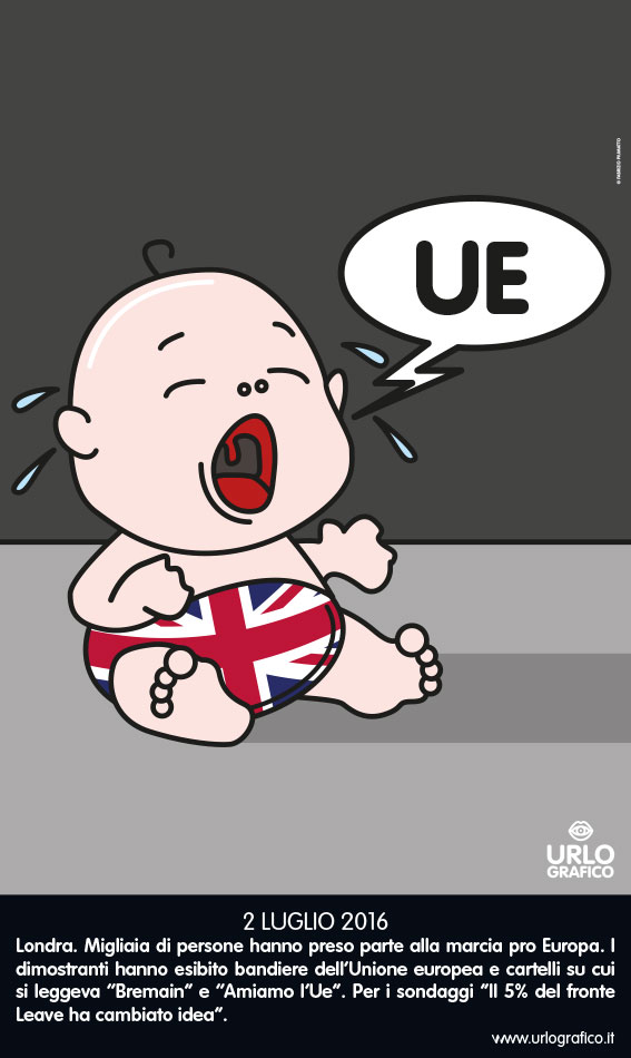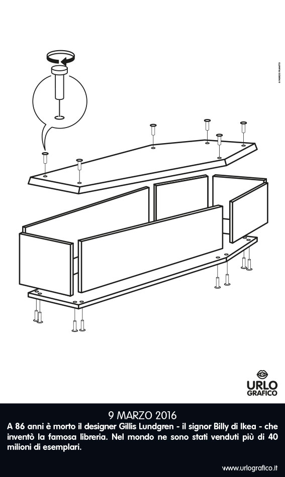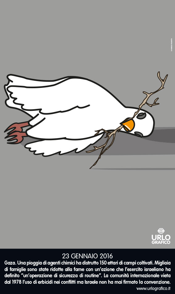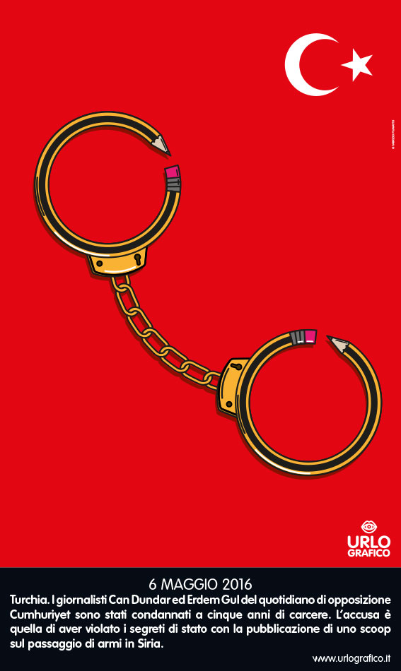 F.P. Sono un grafico pubblicitario, la mia giornata è da sempre scandita da immagini, segni, disegni e idee. Durante l’orario di lavoro abitualmente c’è un committente, un cliente, che ha richieste specifiche, esigenze precise. Urlo Grafico è invece un progetto personale, nato in piena libertà dalla voglia di creare un percorso più complesso e articolato, ma che vivesse di vita propria. La grande mole di notizie che ogni giorno escono e vengono pubblicate dà spazio a infinite possibilità rappresentative. Tutto è iniziato per caso, nel 2012, in seguito alla realizzazione di una tavola riuscita particolarmente bene. Ci ho preso gusto, ho continuato, e tuttora continuo a commentare le notizie nel modo che mi riesce meglio, illustrandole. È un lavoro impegnativo, specialmente quello che precede la pubblicazione della tavola, che consiste nel leggere e consultare la maggior quantità possibile di quotidiani, riviste, cartacee e online. Cerco di evitare i cliché e le facili rappresentazioni. Spazio tra notizie importanti, di fatti gravi, e notizie più leggere che mi permettono di offrire un punto di vista anche ironico. Credo che l’offerta di Urlo Grafico debba essere ampia ed evitare la ripetitività. Insomma, scelgo senza alcun tipo di priorità tra cronaca, arte, scandali, finanza, politica, guerre. Poi comincia la fase creativa vera e propria, che si materializza con penna e colori su un blocco per gli schizzi, ma in piena libertà, senza analizzare a fondo la fattibilità grafica. È la parte del lavoro che preferisco. Solo successivamente “trascrivo” l’idea su computer, ridisegnandola, temporeggio il tempo utile a metabolizzarne il senso e poi la pubblico online.