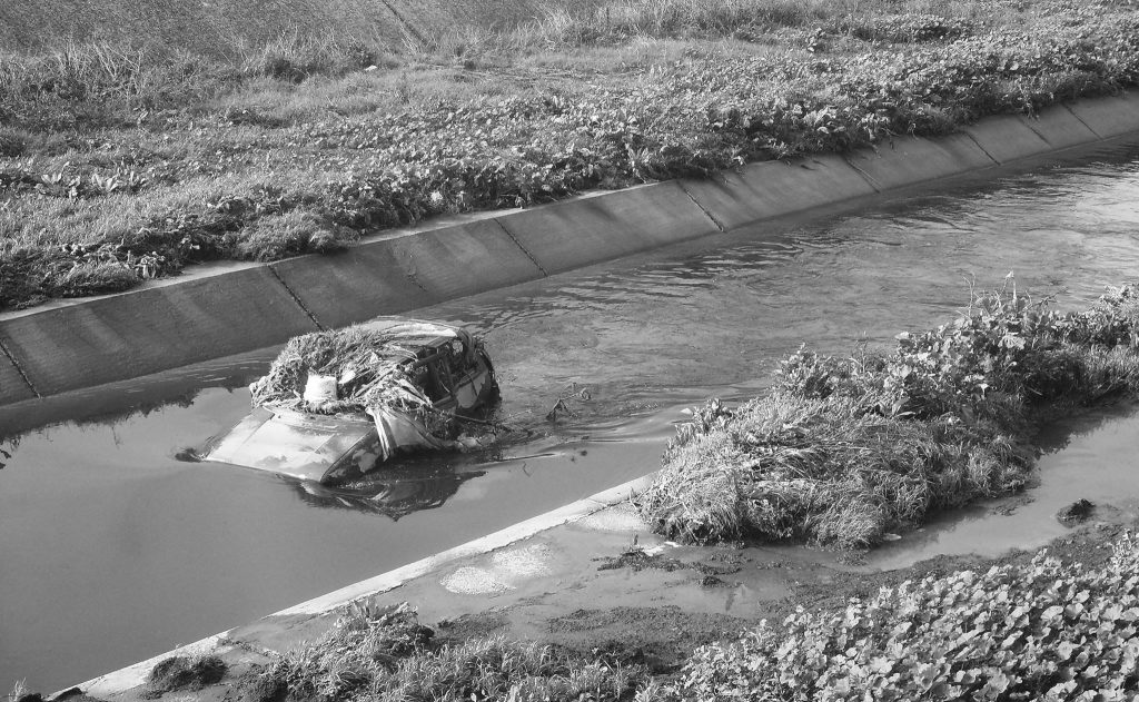 Nel fosso, su quelli che si potrebbero definire gli argini bassi di questa fogna, corre una specie di sentiero dove si può andare in fila per uno e spostarsi senza per forza risalire col rischio di farsi beccare. Da qui si vede tutto il percorso di terra e fango che si snoda a zigzag e fa il giro di quel tratto recintato con la rete e curva dentro il paese e poi prosegue tutto dritto quasi fino alla parrocchia. Dalla curva, proprio da quella, spunta uno che subito dopo casca in una pozza melmosa. Zuppo d’acqua, la camicia stracciata da un lato, la faccia rossa e spiritata. Dietro di lui due tipi massicci, il fiato grosso, arrivano anche loro di corsa e lo raggiungono puntandogli subito contro le loro pistole. Mariarosaria pare essersi addormentata, il suo respiro è impercettibile. Il tipo è un fascio di paura urlante, è un tronco d’uomo inchiodato per terra, una tartaruga ribaltata sul guscio: si sbatte con le braccia e le gambe, come a volersi riparare dai proiettili che esplodono uno dietro l’altro, pam pam pam pam pam pam. L’uomo ora mantiene la posizione, ma privo di vita: le gambe molli al petto, le braccia davanti alla faccia, il corpo disteso su un fianco. Uno dei due in piedi si avvicina di più, scosta le braccia e esplode un ultimo colpo a bruciapelo in mezzo alla faccia. Una chiazza di schizzi di sangue si disegna immediatamente sul volto del tipo come una stella, lo storpia rendendolo irriconoscibile. La violenza ferisce, deforma, ma quell’atto preciso, il colpo a bruciapelo proprio in mezzo alla faccia, è qualcosa che va oltre l’annientamento del corpo, lo ha trasfigurato, arrivando a cancellarlo dall’esistenza.