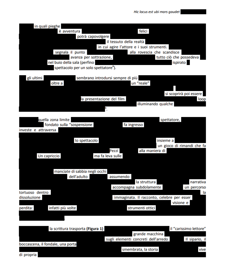 Si apposta nel buio fra me e questi frame. Si presenta per condurre il due nell’uno, con la legge di una nuova intimità (come seme in chiunque la legge).