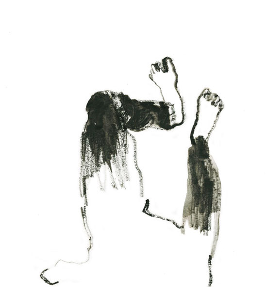 NdR: i disegni di Elena Tognoli : Tentative walking 1-3, matita e acquarello su carta, 2016