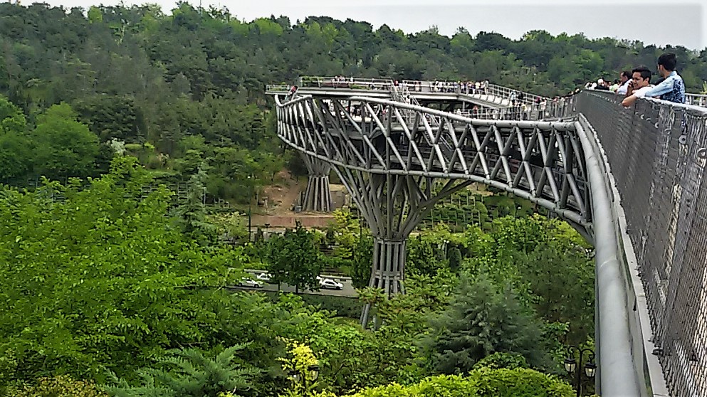 La camminata si fa faticosa, andare verso nord significa cambiare di quota. Svincoli e hight way urbane consumano ogni possibile spazio pubblico. La profezia di Kamran sembra realizzarsi. Poi finalmente arrivo al Ports park. Gente, ovunque. Che passeggia, staziona, si sdraia sui prati, mangia qualcosa. Fra la voragine creata dalla Modares hightway, che la divide dal Taleghani park, svetta il nuovo simbolo di Teheran, il Tabiaat bridge. Tutte le persone che lo frequentano, e sono migliaia, sembrano smentire ogni funesta profezia. Il ponte è per tutti un punto di sosta, di scambio simbolico, di incontro fra una sponda e l’altra, sotto un fiume caotico di macchine. Un luogo da vivere, proprio come m’era capitato di osservare a Esfahan, dove i ponti storici sul fiume Zaiandè vengono utilizzati come piazze urbane dove discutere, cantare, camminare mano nella mano. Non è vero che a Teheran ci si possa muovere solo in macchina. I suoi abitanti, anzi, vorrebbero tornare a vivere e occupare lo spazio pubblico. E in un mondo dove si costruiscono sempre più muri, l’idea di un ponte come simbolo di una città non può che essere una buona notizia.