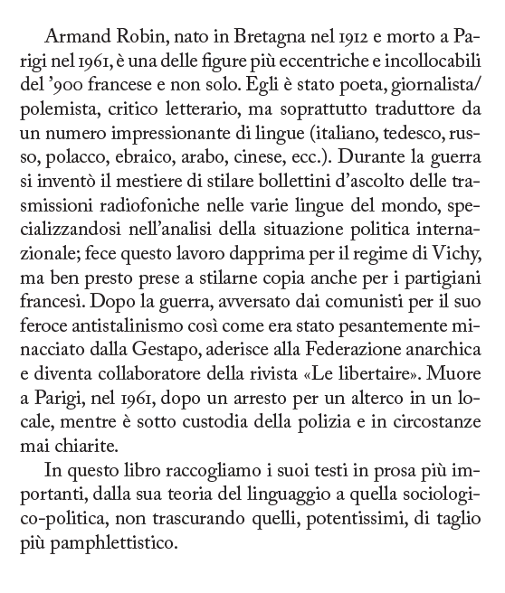 da Armand Robin, L’indesiderabile. La falsa parola e altri scritti. A cura di Antonio Malinverno. Giometti & Antonello, Macerata, 2018 (pp.23-28)