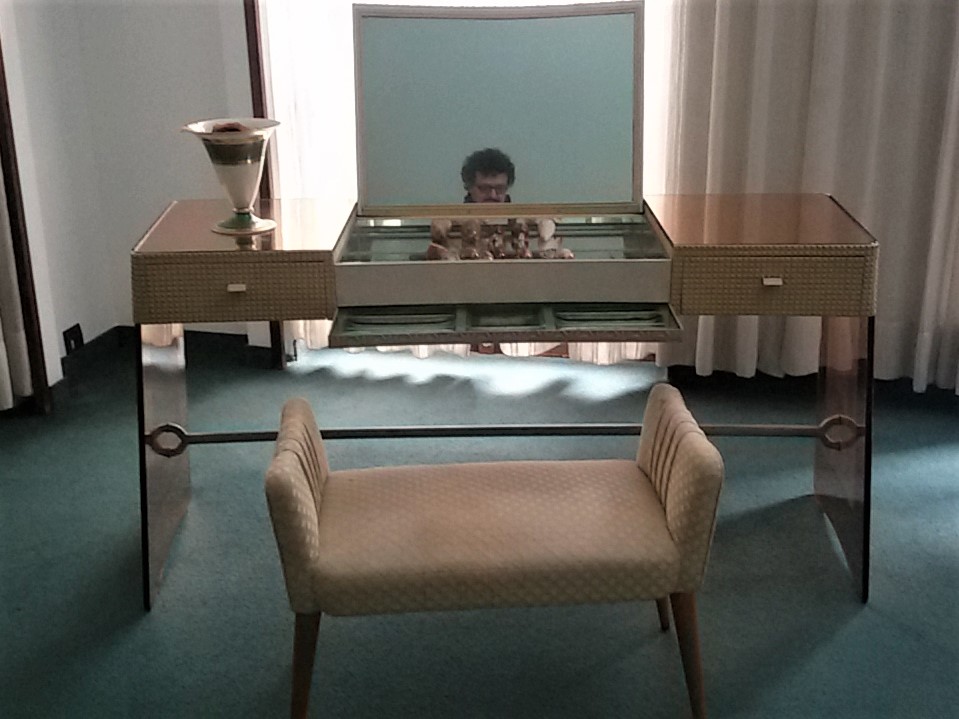 Ho visitato e studiato Casa Boschi-Di Stefano e villa Necchi-Campiglio. Due modi di interpretare l’abitazione borghese del novecento a Milano. Ma – non ostante l’indiscutibile bellezza – l’eccessiva musealizzazione, le rende fredde, sacrali, distanti. Qui, a differenza, si respira ancora aria di casa. Lo specchio della toeletta in camera da letto sembra sia stato appena alzato dalla proprietaria, la cantina ha ancora bottiglie impolverate di Barolo, nello studiolo pare ancora di sentire gli echi delle discussioni fra Gio Ponti e i fratelli Borsani.