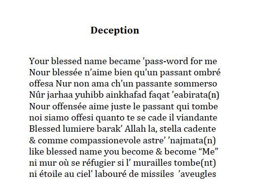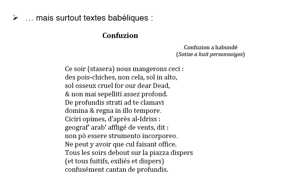 Poesie plurilingui lette nella manifestazione di Linguafranca / Observatoire de la diversité culturelle, credo verso l’anno scorso a Parigi… anzi se ne dovrebbe trovare un video in rete?