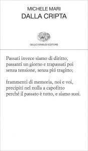 Dalla cripta oltre a costituire un’altra testimonianza della (auto)biografia letteraria di Mari, è anche l’ennesima dimostrazione della capacità mimetica di questo autore che sa mirabilmente aderire agli stili, al lessico e alle forme della lingua letteraria dei secoli passati, si tratti del Sette-Ottocento come del Trecento. Il mimetismo linguistico di Mari, già ampiamente evidente in Io venia pien d’angoscia a rimirarti ma in realtà presente un po’ dappertutto nella sua produzione, non è solo mero esercizio stilistico né puro virtuosismo fine a sé stesso, rispondendo in verità a una ben più intima e urgente esigenza di comunicazione: da sempre l’autenticità della scrittura di Michele Mari passa attraverso un’altissima formalizzazione stilistica e non di freddezza si tratta, bensì di un modo come un altro – certo quello più congeniale a questo autore – di essere sincero fino al midollo. Dunque l’urgenza espressiva, il bisogno di dire cose in qualche modo “forti”, forse anche imbarazzanti, la visceralità della confessione letteraria in Mari non possono prescindere dal bisogno, classicisticamente inteso, di cristallizzare in punta di penna, mediante il ricorso a un registro formale alto, la propria interiorità, lieta o dolente che sia. Ed è probabilmente questo il lascito più puro, più genuino e schietto, di Mari che, a chi sa leggere attraverso ed oltre gli artifici e i mascheramenti del bello scrivere, ha sempre parlato con il cuore in mano.