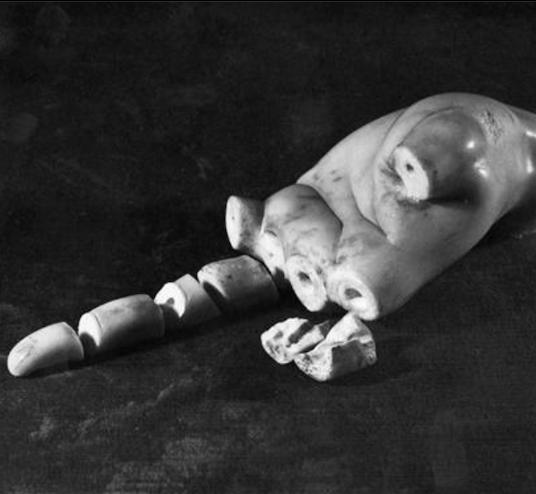 Frattura del braccio sinistro, frattura del naso, frattura dei tre lembi del velo, abrasione della palpebra dell’occhio sinistro, scalfitture multiple alla testa: ma la Madonna non ha sperso la tenue gravità in firma d’obliquo, o oramai le s’ostina una cipria vitrea, un velo mitografo.