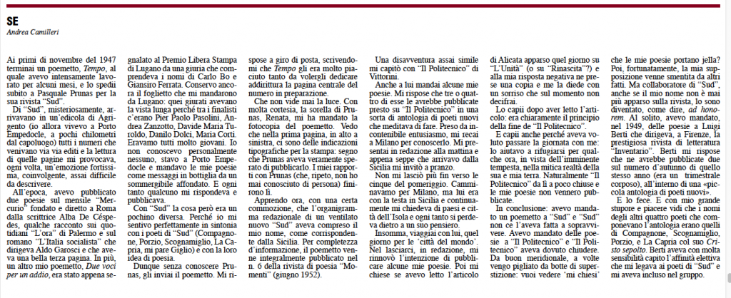 Per il numero 1 di Sud, Andrea Camilleri scrisse per noi questo magnifico racconto (effeffe)