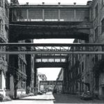 Ho ritrovato analoghe sensazioni del fuori-fabbrica in un testo degli inizi degli anni Cinquanta, un diario di Ottiero Ottieri, pubblicato oggi col titolo di “La linea gotica”. Nel 1951, descrive una passeggiata a Sesto San Giovanni, con rientro a Milano passando per la Bicocca. Insomma nel tessuto più concentrato della periferia industriale milanese di nord-est, quella periferia che gli sembra un «prolungamento violento della città, disarmonico, nato intorno ad una ferrovia che si avventa in mezzo con fragore, intorno ad una strada dal traffico compatto quasi che il flusso di Milano vi traboccasse accresciuto da una periferia che invece di diradarsi e naturalmente morire nella campagna, ingrossa di nuovo come un bubbone». Prima Ottieri passa davanti alla fonderia Breda, scorrendo lungo un «muro lunghissimo … sopra la muraglia compaiono e stridono le altissime gru a ponte, l’unica attrezzatura industriale che il muro non riesce a nascondere. Tutto il resto è segreto»