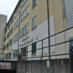 - Facciata principale della Università della Bicocca, con opera “Chained”, di Borondo&Tresoldi