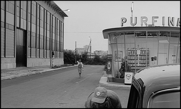 Lidia girovaga in un miscuglio fra periferia industriale ed ex campagna: distributori di benzina, mura di cinta e cancellate, edifici produttivi, depositi a cielo aperto di macerie, campi oggi assorbiti nel Parco Nord (ma ancora riconoscibili) e spazi sterrati dove si scontrano bande di teddy boys. In inquadrature lunghe compaiono anche pezzi dell’apparato industriale: il CarroPonte, un serbatoio Breda, ed una infilata di viale Sarca in cui si riconosce la torre piezometrica. Originariamente serbatoio d’acqua al servizio delle varie industrie, costruita nel 1913 in forme storicistiche che richiamano una torre medioevale, è stata risparmiata dalla demolizione di tutto il resto ed ora fa parte del campus dell’Università della Bicocca e con il suo slancio di 45 m. si pone come punto di riferimento visivo e segno di continuità fra la nuova e la vecchia Bicocca.