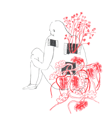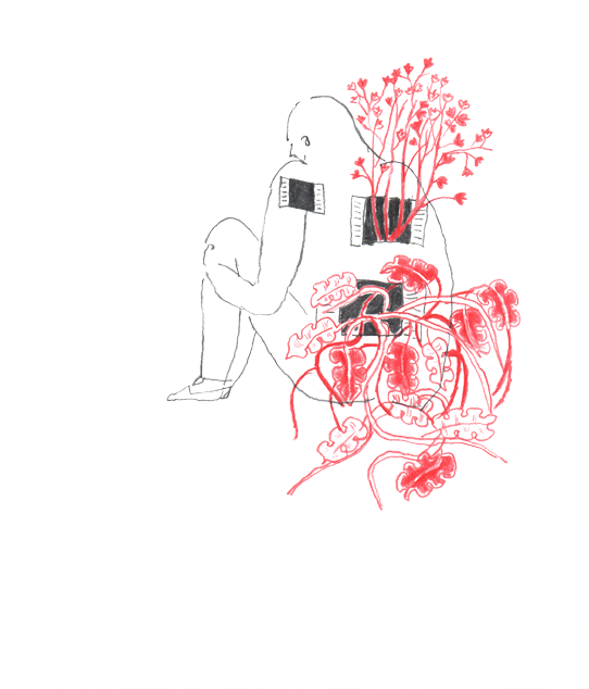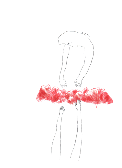 E’ stato molto importante per me dar forma fisica (disegnata) a queste testimonianze incistate nei corpi. Nascono come immagini e vissuti perfettamente evidenti; le parole, il bisogno di palesarsi attraverso il linguaggio, gli si avviluppano intorno. Testimoniaze che arrancano nell’immediato post-.