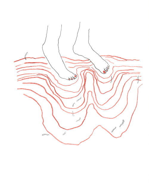 “Io e mio figlio siamo andati al parco e ci è venuta voglia di camminare a piedi scalzi (non sapevo se si poteva ma l’abbiamo fatto). La terra mi sembrava molle e fragile e i miei piedi orribili, come se calpestando il suolo potessi uccidere tutto.”