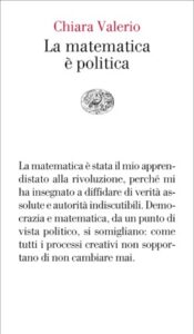 In generale sono contrario a fare di Nazione Indiana un blog prevalentemente di recensioni, ma qualche rara volta non resisto alla tentazione, specialmente quando mi capita tra le mani un librettino come La matematica è politica, firmato da Chiara Valerio, per molti anni indiana (e dunque eis aiōna) e uscita, con mio grande dispiacere, nella primavera 2012, dalla nostra Nazione per uno stupido malinteso. Il libro è uscito l’anno scorso nelle “Vele” Einaudi, direi subito dopo la cosiddetta prima ondata del Covid, ha 105 pagine e costa 12€.