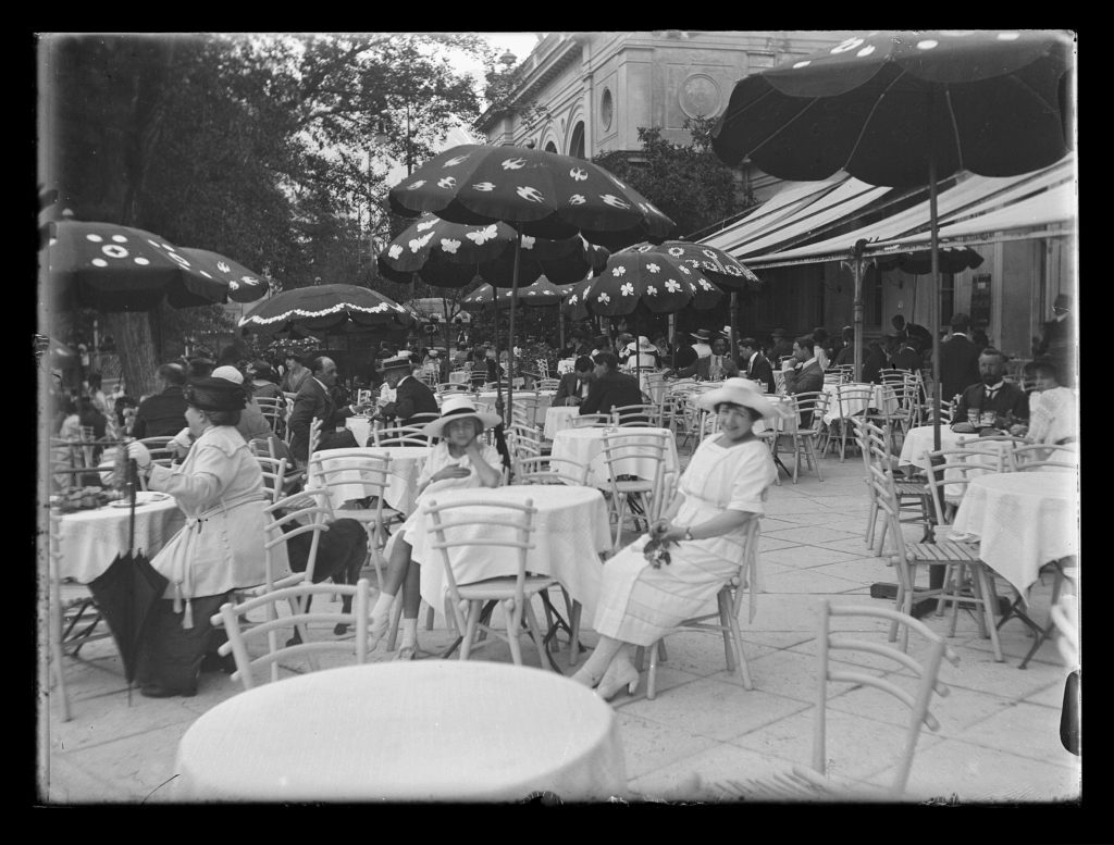 C’è soltanto un altro tavolo come il mio, almeno a prima vista, impegnato da una sola persona: una dama notevole per aspetto ed età, i capelli ancora vaporosi, azzurrini, incastonata in un abito nero sul quale brillano, come nel cielo che si vede attraverso le vetrate, gioielli sfarzosi che paiono stelle di prima grandezza. L’abito è serrato fino al collo, sembra un campionario di passamanerie e nastri vari, neri sul nero. Ha una dama di compagnia, intravista prima nella hall, che certamente ha pranzato da sola in camera, e che l’attende in un salottino, leggendo un libro probabilmente.
