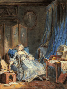 Il passo che segue è tratto, per gentile concessione dell’editore, dal saggio “Il teatro del letto” (La Nave di Teseo, 2021), di Mario Baudino. L’immagine, scelta dall’autore: Pierre-Antoine Baudouin, “La lecture”.