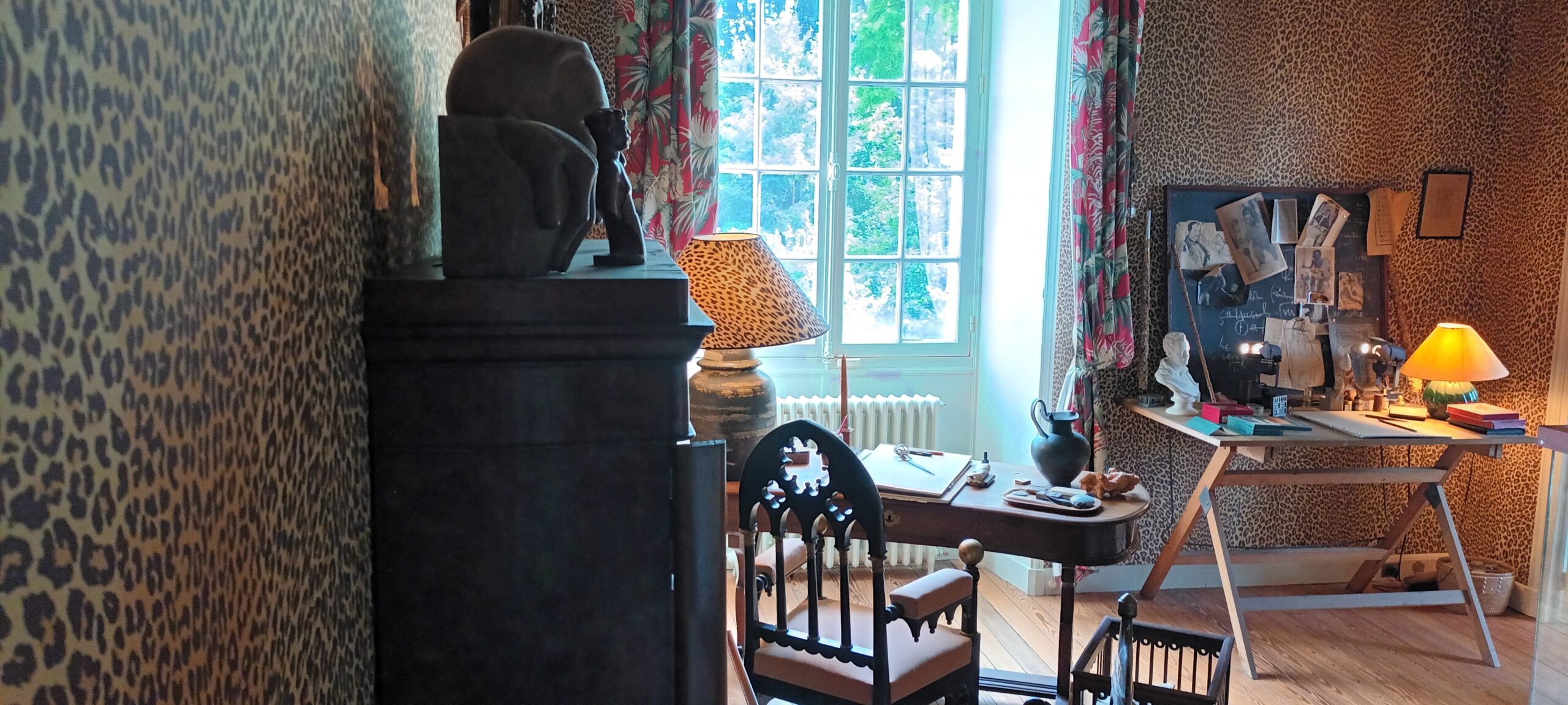 Ciò che però manca, in questa casa, è il segno del talento di un artista così eclettico – drammaturgo, romanziere, saggista, regista, pittore, creatore di mosaici e ceramiche, di tessuti e gioielli -, eppure sempre così «poeta», tanto da classificare le sue opere in poésie de théâtre, poésie de roman, poésie critique, poésie de cinéma e persino poésie plastique: fatta eccezione per i pochi disegni esposti all’ingresso, non c’è traccia dei suoi numerosi schizzi, dipinti, sculture, oggetti decorati, e lo spazio è troppo poco per godersi la lettura delle occasionali citazioni tratte da suoi testi e riprodotte sui muri. Mancanza non colmata neanche dalle due piccole esposizioni temporanee, aperte fino al 31 ottobre per festeggiare la riapertura: la prima dedicata al «bestiario incantato» dell’autore, in cui sono esposte sculture di animali che gli erano appartenute; la seconda, molto didattica, consacrata al balletto Parade, concepito da Cocteau nel 1917 per rispondere all’imperativo dell’impresario russo Diaghilev, che gli aveva ordinato «Stupiscimi!» (l’autore ci riuscì, insieme a Picasso che curò le scene e a Satie che compose la musica: per descrivere questa pièce Apollinaire coniò l’aggettivo «surrealista»). La visita della casa, dunque, sembra concepita soprattutto per appassionati di cabinets de curiosités, e potrebbe deludere chi avesse voglia di sentire o riconoscere il vero esprit cocteauiano: ad allontanare il rischio, però, contribuiscono sia la vicina e bella Chapelle Saint-Blaise des Simples che, sebbene non inclusa nel circuito della Maison, fu interamente decorata dall’autore e ospita oggi le sue spoglie; sia il giardino incantato che circonda la casa, nel quale Cocteau era solito ammirare «l’assurda e magnifica testardaggine delle piante»; si capisce così perché vi si fosse stabilito, facendo del luogo un rifugio intimo più che un salotto mondano (nonostante le occasionali visite di amici celebri), e perché, quando lo scoprì, disse di aver finalmente trovato «un cadre», una cornice serena e un po’ magica in cui vivere e lavorare.