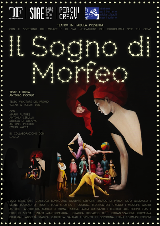 Comunque tra la base, accessibile a molti come una valle rigogliosa, e la vetta, che richiede uno sforzo cosciente e nessuna vanità oltre che l’espulsione di qualunque istinto gregale, solitamente nocivo, vi sono gli scalini intermedi. Eccone alcuni: 1) lasciare il pianeta, salire verso il cosmo, avvicinare il Mistero. Il sogno non è soltanto mio, fa parte della memoria universale. Giunge da lontano, da quell’Assoluto che ci ama. 2) Incontrare i morti. Nella dimensione dei sogni l’amore ritrova sempre i suoi cari, ancorché defunti. 3) Affrontare gli archetipi divini e i miti. Buddha, Cristo, Confucio, Maitreia sono apparsi a Jodorowsky. 4) Trattare la realtà come un sogno. Analizzare gli accadimenti, in particolare quelli che fanno male, come se fossero simboli dell’inconscio. Quest’ultimo punto è decisivo se si vogliono indovinare scopo ed obiettivi de “Il Sogno di Morfeo” di Antonio Piccolo. Esso è infatti la storia di un trauma che non si compone se non con il ricorso alla forma pura dell’amore, capace di leggere, tra le pieghe dell’essere, le funzioni oscure dell’esistenza, e di farvi fronte. Con Alice, eroina della pièce, cade l’Occidente. Morfeo aspira al risveglio di entrambi. Quando si è in terra, è con le mani che diamo la spinta verso la risalita. Lo sappiamo bene. E lo sa anche l’Eremo dei Sogni.