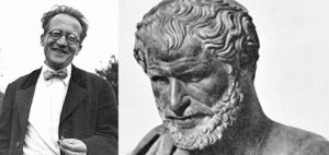 Nei successivi capitoli Schrödinger passa in rassegna, con notevole acutezza e anche competenza storica, una serie di pensatori della grecità, dai Pitagorici a quello che lui chiama l’Illuminismo Ionico, da Eraclito a Senofane e via dicendo. Certo non tutti questi erano dello stesso parere, tutt’altro, opinioni molto diverse li caratterizzavano, ma tutti potevano parlare di tutto il sapere sul mondo e sulla sua costituzione. Questo è quello che affascinava Schrödinger e che lo spingeva a studiare pensatori così remoti nel tempo.