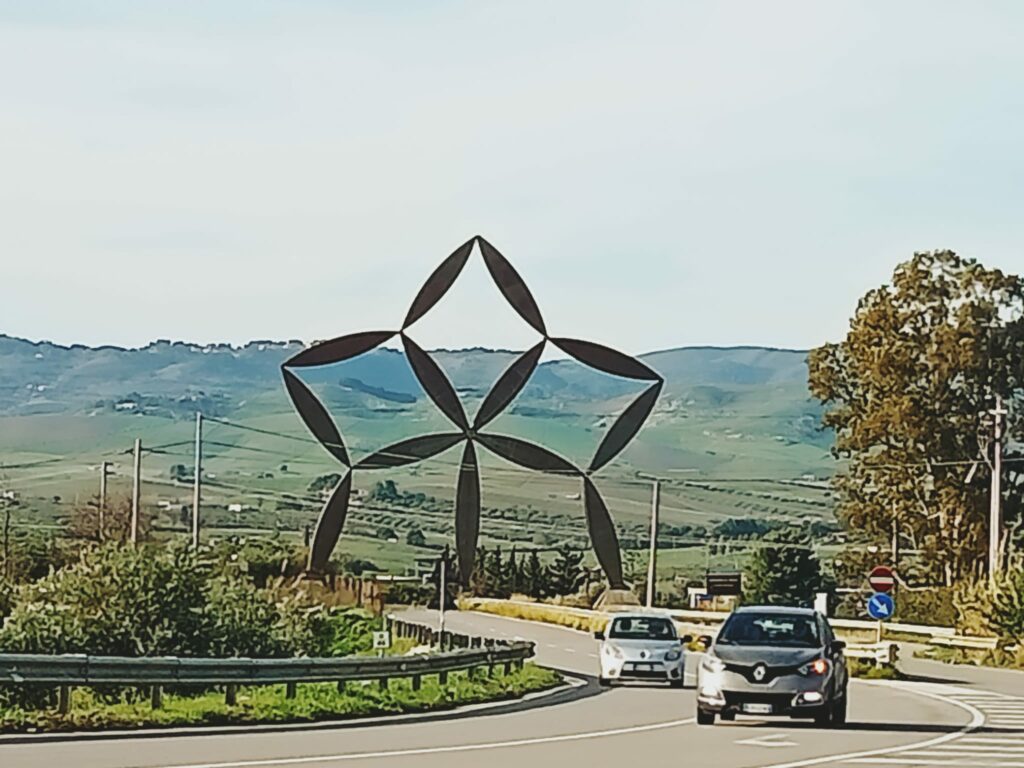 C’è chi, come me, Gibellina la conosceva solo così, per via di Burri e di Pietro Consagra, l’artefice, entre autres, della stella d’acciaio inox che sovrasta la Statale 188 e accoglie chi arriva a Gibellina Nuova.