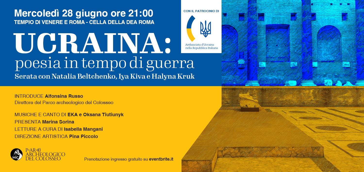 Tre testi in traduzione italiana, e una serata con Iya Kiva, Halyna Kruk, Natalia Beltchenko, al Parco Archeologico del Colosseo, mercoledì 28 giugno.