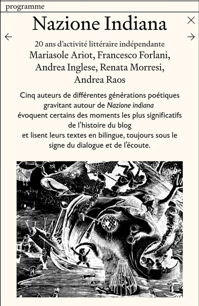 Cinque poeti di “Nazione Indiana” al Centro Internazionale di Poesia di Marsiglia: Mariasole Ariot, Francesco Forlani, Andrea Inglese, Renata Morresi e Andrea Raos. Letture e discussioni su vent’anni di attività letteraria indipendente.