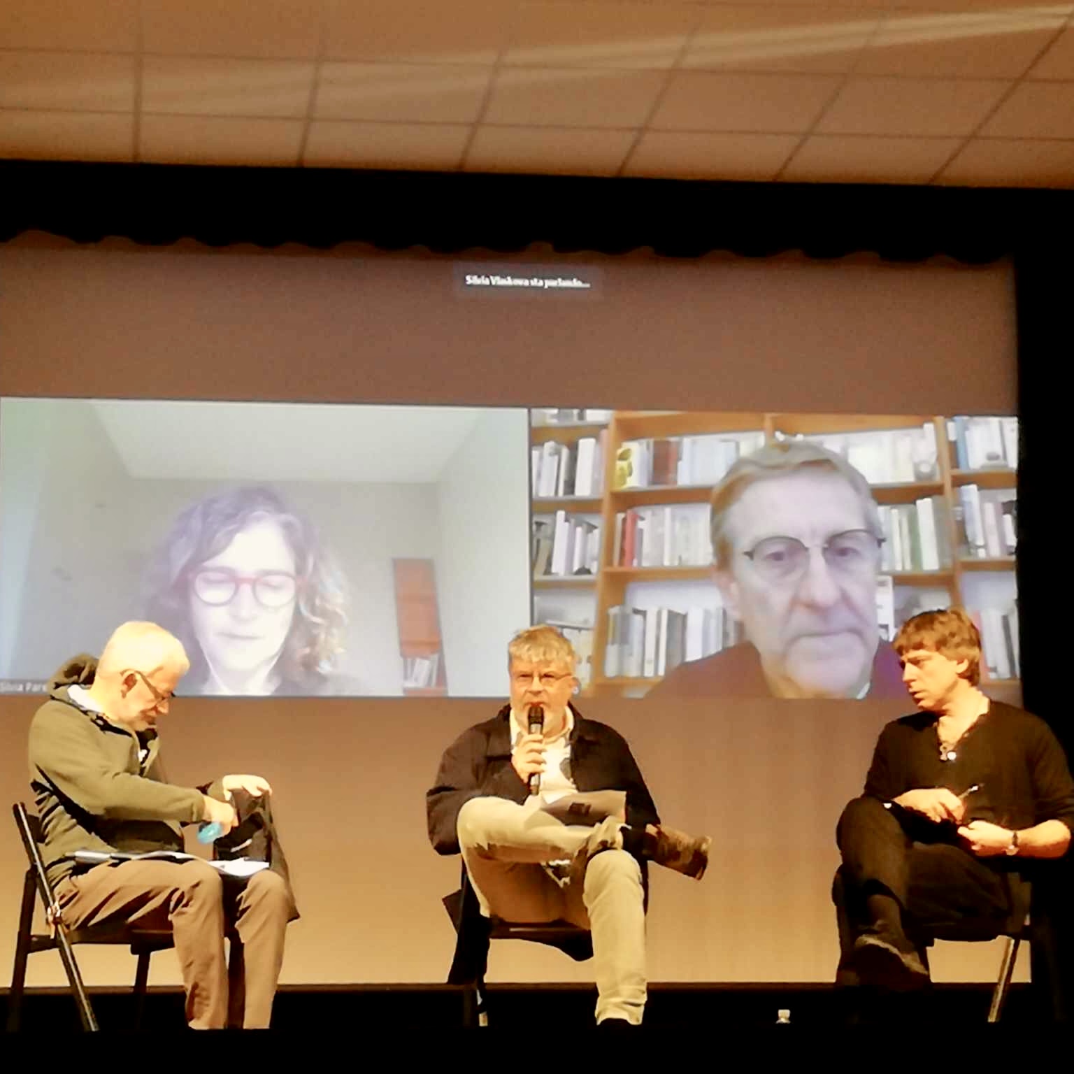 A detta di Laura e Pietro (mia figlia e il suo fidanzato, che hanno curato i collegamenti on line, le luci, l’audio e verificato che nessuno fosse rimasto chiuso in bagno prima di chiudere) un panel di grandissimo interesse.