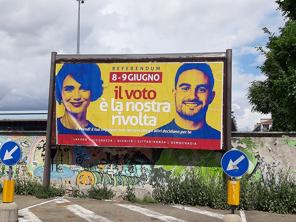 - Referendum sulla cittadinanza italiana: il referendum promuove l’abrogazione di quell’articolo della legge 5/2/1992 che innalza da 5 a 10 gli anni di residenza continuativa nel nostro paese per chiedere la cittadinanza italiana reintroducendo la precedente durata.