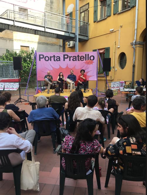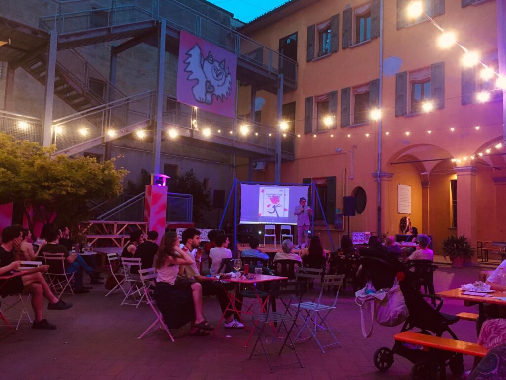 Bisogna pur incontrarsi, parlarsi, abbracciarsi e sorridere. Noi di Nazione Indiana, almeno una volta all’anno, cerchiamo di farlo con le nostre Feste. Quest’anno la Festa di Nazione Indiana si è svolta nello spazio di ⇨ Porta Pratello di Bologna, lo scorso sabato 14 giugno. Eravamo ospiti di ⇨ Grisù / Festival di scritture contemporanee – Lo Spazio Letterario, che ringraziamo per come ci hanno accolti e fatto sentire a casa in un luogo, Porta Pratello col suo cortile e i suoi chiostri, che l’accoglienza e l’ospitalità le ha nella propria storia. Questo è un pezzo in progress, seguiranno video e altre foto degli incontri.
