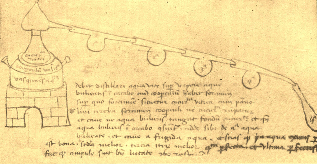 Per mesi pestò, amalgamò, calcinò; temperò il caldo e il freddo, alternò il secco e l’umido. Immerso nell’odor di aceto e di acquavite, leggeva e rileggeva le ricette di mastro Arnaldo il Catalano, vegliando sui vasi a forma di zucca dal collo allungato.