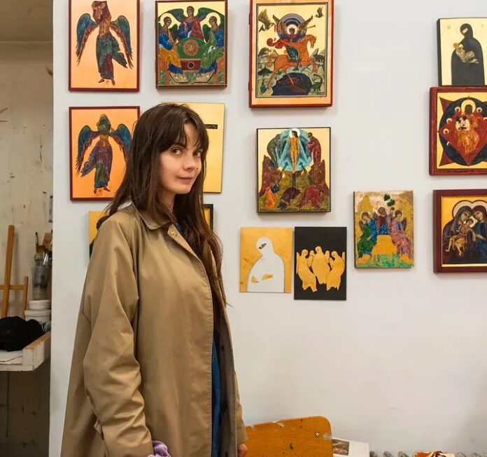 Ho già scritto di Oksana Shachko su ⇨Nazione Indianae se torno a parlarne, ricordando alcuni fatti della sua vicenda è perché casualmente ho scoperto un libro su di lei e sulla sua pittura. Un libro prezioso “Ikonoklast” a cura di Massimo Ceresa, con una prefazione della critica d’arte Antonella Uliana e con la postfazione della giornalista Anna Zafesova. Un piccolo libro ricco di notizie e immagini con inclusi capitoli che spiegano l’arte religiosa dell’Ucraina proponendone esempi. Oksana Shachko dipingeva rifacendosi alle icone della sua terra e ovviamente la sua interpretazione di questa cosmologia era personalissima, urticante e rivoluzionaria. Del resto non avendo rinunciato ai suoi ideali inevitabilmente la sua visione della vita entrava nella sua arte: “Ho ancora le mie convinzioni, ma ho scelto altri mezzi per agire, per diffondere le mie idee…” p.21 Ecco allora, che le figure delle icone e i temi sacri vengono ripresi in un’altra chiave che diventa una forte critica e riflessione su una società e un mondo ostili alle donne, ai diversi, ai migranti, a chi non si conforma.