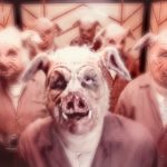 (La supercarne più rossa del rosso. Più sanguinosa di una vena recisa. Più tenera di un boccone di petali. Più nutriente di tre pasti completi. La mangiano gli uomini. Ai maiali, invece, disgusta ← la sua morbidezza, la sua fragranza. Il maiale rifiuta pancarnis.)