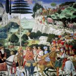 L’afa ci pigia nel fondigliuolo della vita, tra l’asino quasi nolano, frontale allo sbalzo dei secoli, il pavone derviscio e ciascun’altra bestia inventata per noi da Benozzo Gozzoli: labirinto broccato, orificio, di chi ha già bevuto la sua eternità. E sotto gli angeli, nella scarsella, una fumigazione marmorea, un frangimento di colori...